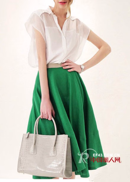 姑娘们秋天不要在让自己变得那么的沉闷了,秋季也可以穿亮色。绿色的半裙款式搭配白色T恤,衬衫或是针织衫都绝对很美哦,秋季一条百褶裙在手,搭配无忧,无论你是会搭配的还是不会搭配,有了这款裙子绝对让你省心不少。