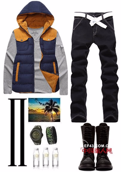 马甲很百搭,但是今天介绍的这款吧不仅是马甲百搭,连牛仔裤也是很百搭哦,一款黄色和深蓝色拼接的马甲款式搭配V领长T款式一条黑色休闲牛仔裤,直筒的效果绝对很百搭,适合任何的外套搭配,绝对是秋季必备。