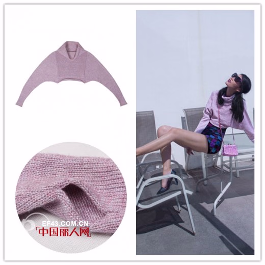 秋凉降临,一件又轻又温柔的针织衫是不可少的。上身被超细羊毛的高领短上衣所亲吻,材质柔软细腻。衣身与袖子采用各异的针织花型,不同的肌理感受,增强了作品的层次性。蝙蝠袖的设计,宽松舒适的版型,自然卷边。袖口融入了半手套设计,不仅能起到保护手部的作用,更能修饰手部线条。
