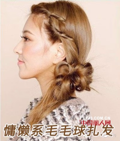 恬静的少女,低扎落在脖子的花式发髻,自然卷起,低垂优雅熟女,甜味韩味十足,展现出浓浓的仙感。