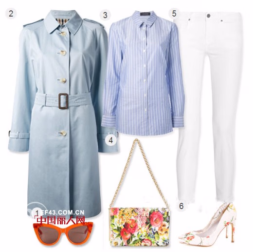 搭配要点:太阳镜、风衣、衬衫、单肩包、牛仔裤、高跟鞋