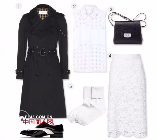 搭配要点:风衣、衬衫、单肩包、半身裙、袜子、牛津鞋