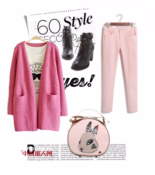 这件宽松的桃红色针织衫,具有轮廓线条的设计,中长款的版型,刚好能够遮掩住小粗腰。内搭一件宽松的白色印花T恤,下身搭配浅粉色的小脚裤,桃红和浅粉的搭配让心情变靓。脚上搭配上一双黑色高跟鞋,能够拉长腿型让你更显瘦哦!