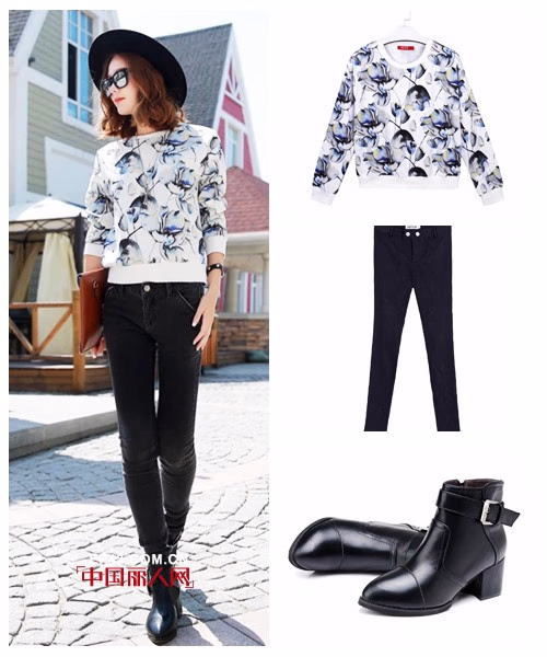 印花衬衫+黑色紧身裤+黑色尖头高跟鞋,搭配简单,时尚却不是那么简单。将印花衬衫衣角放置裤腰内,可以用一条撞色腰带束腰,这样会更加的吸睛。