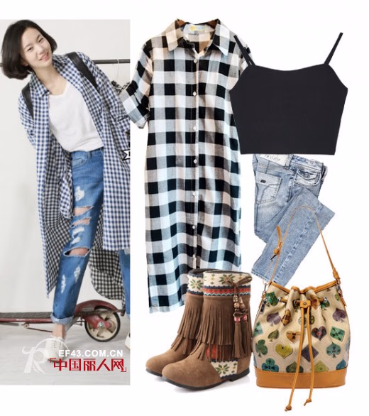 很有小清新文艺气质的黑白格子衬衫,长款的版型可以做连衣裙穿,也可以敞开作为长开衫哦,配上简单白色的T恤或是短款的黑色背心和高腰的破洞牛仔裤,十足的硬朗街头风气质款,舒适百搭,初秋服装搭配的不错选择哦!