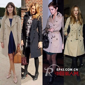 风衣可谓是一年四季、全球各地、任何场合都能够有型、绝对得体的经典中之经典。如今的风衣不再是有板有眼的酷帅造型,我们更可以大胆发挥想象力,扣子打开来,袖扣挽起来,再搭配上一条舒适的围巾挂在胸前,个性休闲打造成功。与众不同才是王道。