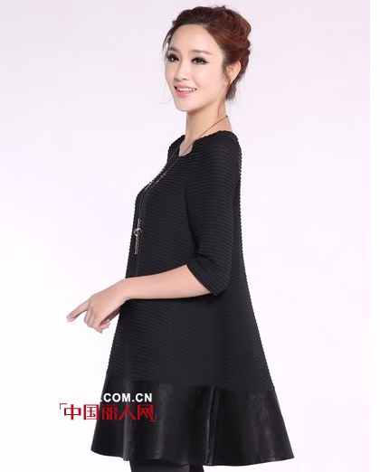 传统的风琴褶皱都是竖着的,但腰身两侧的线形对接却显现着横褶皱的与众不同,用立体取代撞色,既不缺失条纹潜藏暗送的俏皮轻盈,又能在黑色乃至圆领大摆的掩映下,完成显瘦的一语双关。