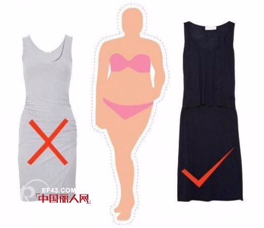 如果你的四肢都比较纤细,唯独腰腹部比较浑圆突出,那就属于苹果型的身材,紧身的连衣裙是绝对要禁止的款式,上下两截的穿搭更有利于分散对于腰腹部的注意力,选择较暗的颜色遮住腰腹部,会让腰线看起来变得纤瘦,鲜亮的浅色如明黄色或是闪亮的金色、银色都是需要避开的。也不要试图在腰间系上造型夸张的腰带,对于不够完美的部位,就尽量的让它弱化,而不是吸引更多的注意力。