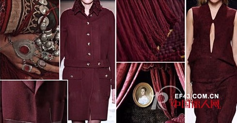 浓酒红:这种较高纯度的暗红色,显得浓郁而危险,给人以致命的诱惑力,是本季最受欢迎的红色。