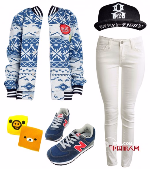 最新款的韩版学院风的棒球服,时尚的牛仔印花面料加上拼接的徽章设计,比以往的传统棒球服多了几分的时尚气息,搭配上白色的小脚裤和蓝色的运动鞋,让简约的服装搭配不失单调,是漂亮MM的最佳选择哦!