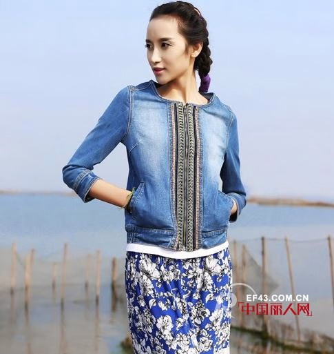民族风绣花的融入让牛仔外套在都市中有了独树一帜的感觉,个性极强又能够与周边时尚环境相融。将民族风的元素控制在一定范围内,小面积点缀既能起到点睛作用,又不至于难以驾驭。