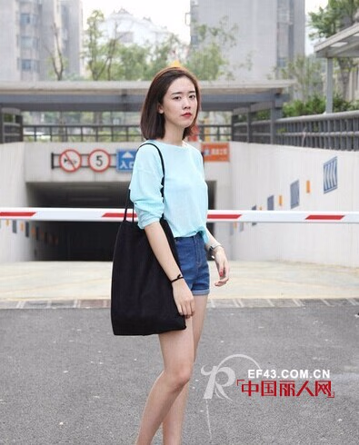 针织衫搭配想要吸睛抢镜,首先当然要在针织衫的选择上花点心思,我们可以像这位达人一样选择天蓝色这样的亮色系针织衫来搭配牛仔短裤一起穿着,亮色系总第一时间帮我们吸睛抢镜,而短裤则能让我们秀出美腿凸显女人味,自然也是一大吸睛秘籍。