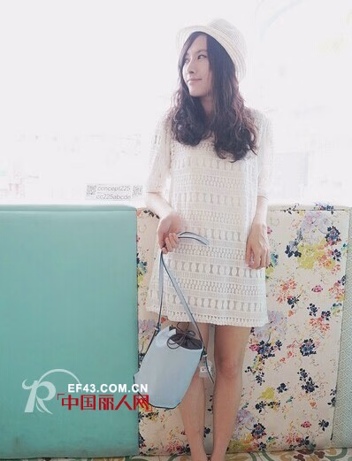 我们先来看看这位妹纸身上的这款白色刺绣连衣裙,清新素雅的白色给人的感觉很是清纯可人,而精美的刺绣更添了几分精致女人味,再搭配同色系草帽和浅蓝色水桶包一起,整体look显得很是淑女甜美而又浪漫。