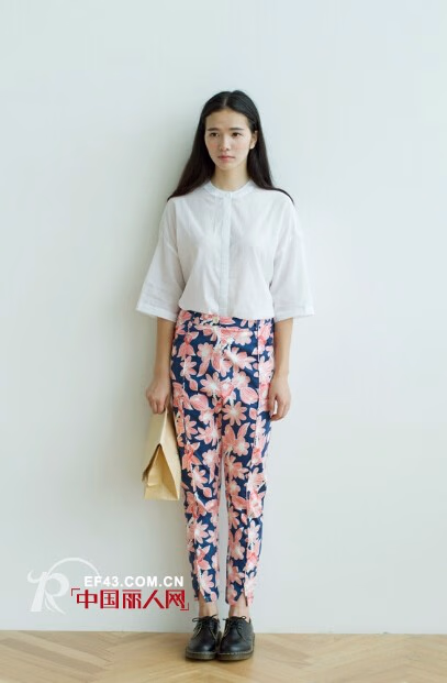 这款棉质宽松蝙蝠袖的白色衬衫,大袖口中袖的设计,很有日系复古学院的味道,选择时尚印花的九分裤搭配,踩着黑色的复古露踝皮鞋,大方知性。