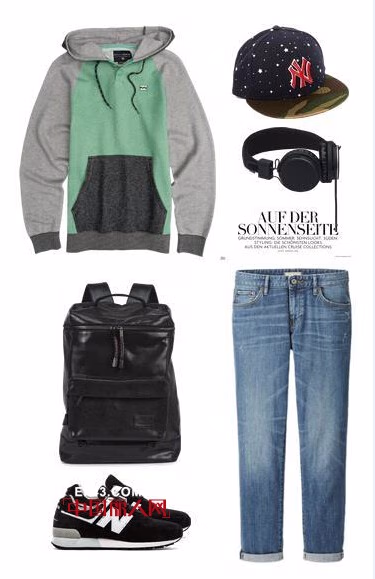 连帽卫衣款式搭配,想要装嫩必须要配上双肩包,下身搭配一条浅色牛仔裤,这样的卫衣装扮绝对是亮眼十足,一顶鸭舌帽款式搭配,秋季这样的装扮绝对是阳光帅气的穿搭。