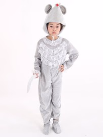 灰色的小老鼠是如此的可爱逼真。两个形象的耳朵和红色的小鼻子,还有丝丝的小胡须。太萌的感觉。连体的灰色款式,白色的面料拼接覆盖,活像一只俏皮的小老鼠。高档的面料运用,良好的上身效果,让孩子们穿起来舒服,演起来自然。还有一根小尾巴,太完美的设计。