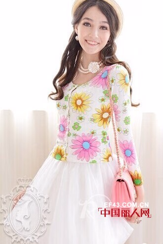 花朵修身长袖开衫