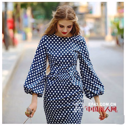都说长发女生是最美的,不要嫌自己的头发太长,当你长发及腰在弄上大卷的发型,你会爱上你的秀发,你的长发及腰,这款连衣裙款式,鱼尾裙设计宝蓝色波点点缀很显活力,袖子还是灯笼袖点缀绝对赞。
