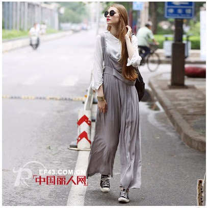 及腰的长发绝对很亮眼,一缕秀发就可以吸睛,这款灰色背带阔腿裤配上一件白色衬衫,整体都是舒适的面料,配上帆布鞋,这么潮的搭配,不仅是成熟女性,潮人也会这样穿搭的。