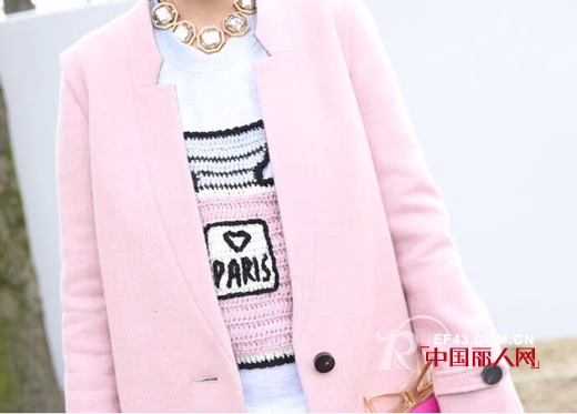 日韩系粉嫩嫩的大衣外套,掩藏不住的少女心啊!而香水logo的灰色卫衣与夸张的项链,又有着美式的潇洒感,甜美与随性并重,真是个磨人的小妖精~~