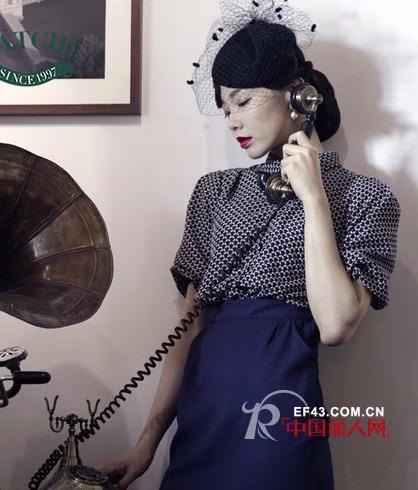 假两件连衣裙避免了高腰裙滑落的尴尬,上松下紧的廓形对修饰身材很有效果,复古气息超浓厚的水玉波点碰上藏蓝色,瞬间穿越回白墙黑瓦淡淡忧伤的时代,在初秋微微的凉意中,更觉诗意十足。