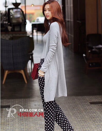 经典的灰色简约大方又不失时尚感,宽松的版型轻松帮我们遮住多余赘肉,而中长款的设计同样能帮我们遮住臀部赘肉让我们看起来更显瘦,然后再搭配波点长裤和酒红色手拿包包一起,整体look休闲舒适又不失时尚大方。