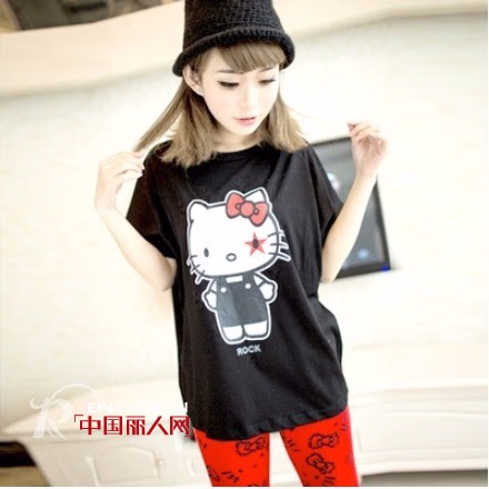 可爱的小猫图案的款式设计,无论是白色还是黑色都绝对是亮眼无比,宽松的版型可以适合微胖的女生穿,白色宽松版型T恤配上一条玫红色打底裤,黑色宽松T恤搭配一条橙色打底裤,两种颜色搭配,总有一种适合你。