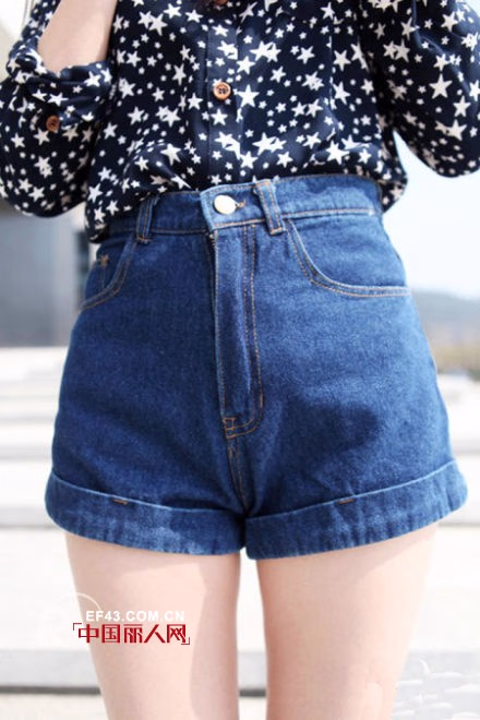 牛仔短裤是最百搭的款式,无论是搭配什么上衣都会很好看,高腰的牛仔裤款式,宽大的裤边设计使有小粗腿的姑娘可以更自信,深色牛仔蓝颜色也是比较的显瘦,配上星星点缀的衬衫款式绝对很有复古的感觉,也是减龄必备的穿搭哦。