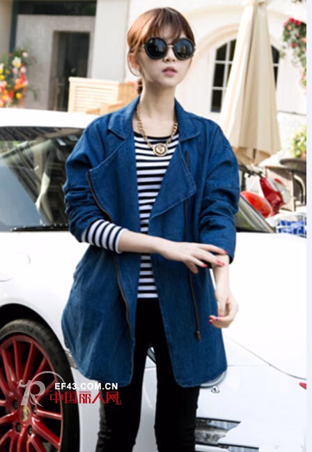 牛仔外套款式韩版牛仔款式个性的不规则的拉链设计,可敞开也可以拉上两种穿搭不同风格显现,内搭黑白条纹T恤配搭一条黑色高腰小脚裤,秋冬显瘦必备,这款牛仔衣有点欧版的感觉特别的宽松,适合不同身材美眉的穿搭。