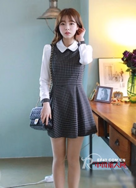 入秋时候该穿什么样的连衣裙呢?长袖是不是绝对需要的呢?这款经典格子连衣裙款式,白色袖子和白色娃娃领的点缀更加清新,娃娃连衣裙的款式甜美可爱尽显,秋季减龄必备的装扮配上黑色包包绝对亮眼。