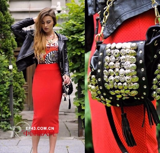 这件红色的包臀裙十分的惹眼性感,也不是胆小的女生嫩呢过驾役出的范儿。华丽的版型,搭配的同色系印花t恤衫和黑色的皮衣,气质十足。