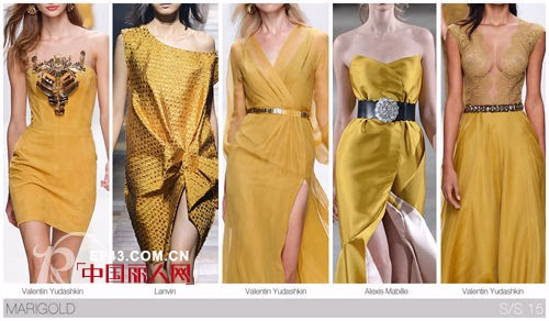 2015春夏色彩的发布主要注重于家庭的主调,包括粉色、沙漠中的金黄色、铁锈色等等。从过去的几个赛季上说几乎粉色成为了主打,但从跟今年的颜色开始出现了一些冰冷的色调。这个春夏季节的色彩非常多样,沙漠色调的中性化脱颖而出,亮色保持在了本季的前列,富贵宝石色调华丽上映。而排名前十的色彩如下: