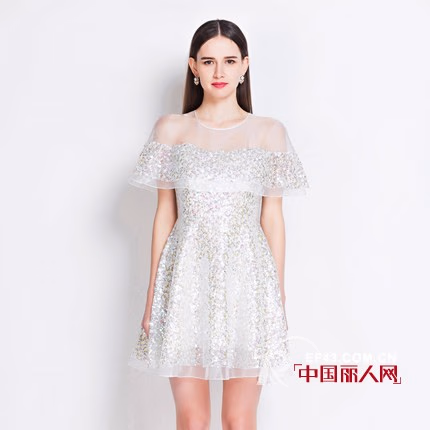 这件连衣裙更加高档的面料,给人舒适柔和的享受。独特的衣领设计,收腰的版型,会让你散发出公主的气质。白色的透视网纱,将女人衬托的雅致唯美,很有名媛气质。搭配一双紫的的高跟鞋,尽显清丽风格。