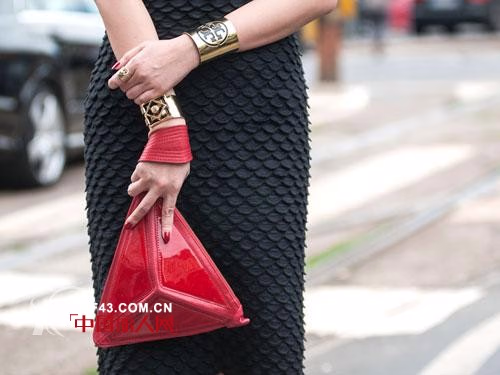 红色漆皮三角型手拿包,别致的造型和鲜亮的颜色让你成为秀场外和Party上的焦点!