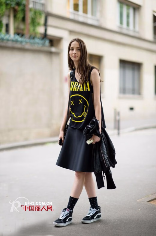 今日推荐给大家一种适合夏日穿着又十分入流的搭配组合,就像图中潮人Waleska Gorczevski搭配的那样,宽松的背心搭配宽松的裙装,凉爽放松的体感让人更耐热,但这组合还要靠脚下的运动鞋来提升时髦度,看她随性的穿了一双vans就让搭配显得潮流感十足,而全身的黑色搭配也更有酷感,这样看似随便其实有料的搭配很适合夏日穿着哦。