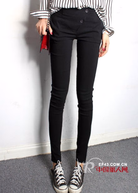 显瘦无论是什么时间,什么季节都是女生们所追求的,而显瘦的裤子最吸睛的一款就是黑色铅笔裤了,今年最流行的黑色铅笔裤款式,高腰的设计可以显出腿长,随意搭配运动鞋或是高跟鞋就绝对美。
