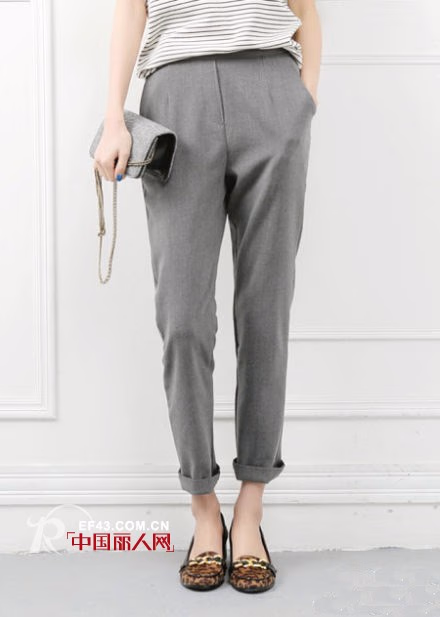 垮裤也可以很显瘦,今夏最热单品就是垮裤了,时尚潮流哈伦版型,灰色一个时尚低调的颜色,九分裤的版型设计也很显退场,上身搭配一件条纹雪纺衫,即有职业气质又很潮哦。