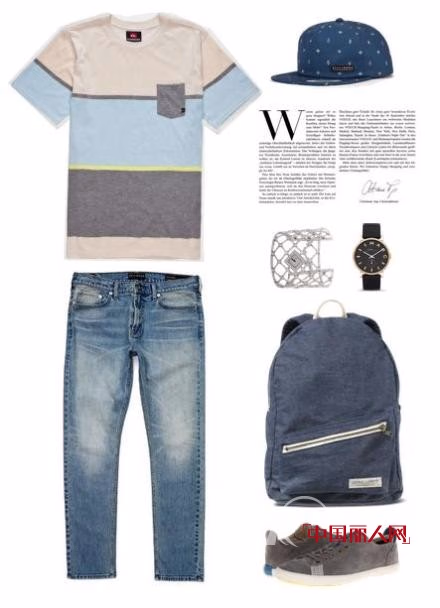 休闲时尚潮搭,依旧是流行的条纹拼接款式,这次是色彩的拼接,三种颜色的搭配配上牛仔裤,这样的休闲装扮可以是上班族穿,也可以是潮男穿着,配上个子的时尚包,帽子,绝对会有不同风格。