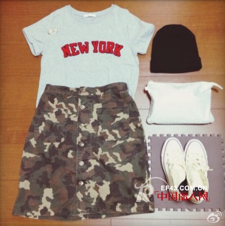 夏天一条迷彩裙绝对很吸睛,迷彩的包臀裙搭配一件灰色T恤,配上鸭舌帽,一双白色帆布鞋,这样的装扮绝对很亮眼。夏天除了甜美装扮,女生也可以很帅气哦。