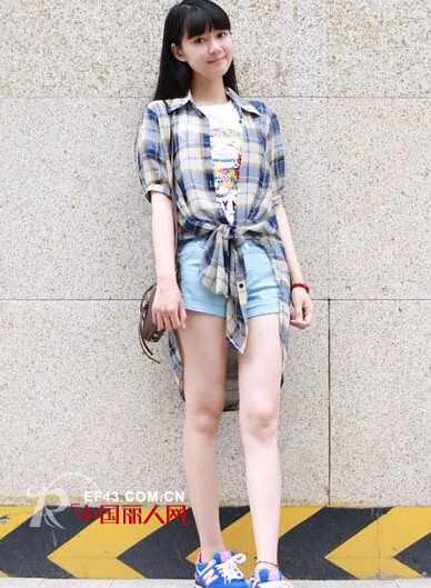 格子衬衫+短裤,很少见这么仙的T,t恤需要多些变化,这样才能又穿的简单又有特色。