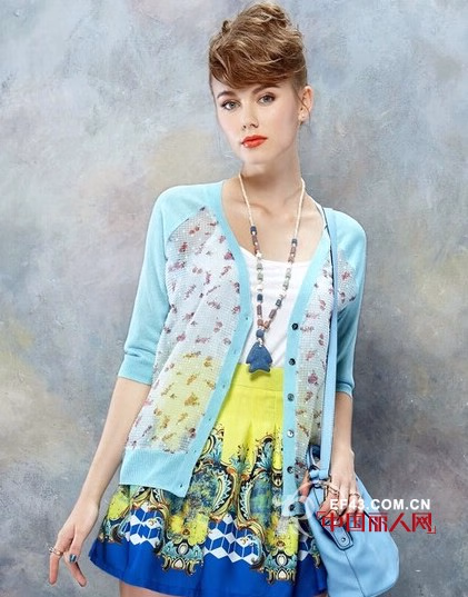 色彩的世界是缤纷的,如何巧妙运用颜色来达到自己想要的效果,是一门高深的学问。小编就很喜欢蓝色,在穿衣打扮中,同色系的组合是能起到强调的作用,同时协调不易出错的。浅蓝色的田园风防晒衫、深蓝色的裙摆、同色的浅蓝包包,整体感觉清新如海风吹来。