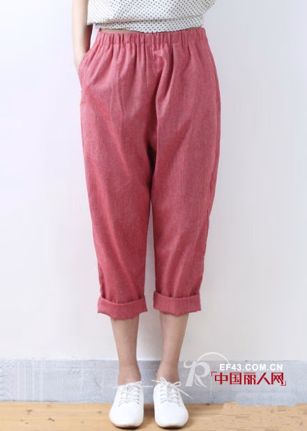 红色哈伦九分裤,红色一个鲜艳的颜色,但是这款红不是大红,而是带有点点的白色,这种颜色在夏天跟清爽,配上一件黑白波点雪纺衫魅力十足,哈伦裤可以随意自己该怎么别裤脚,可以是到脚脖的九分,也可以是到小腿部的九分都可以,潮流又显瘦的哈伦九分裤,夏天你能错过吗?