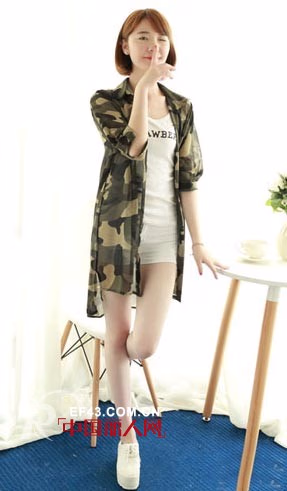 很帅气的迷彩雪纺防晒衣,翻领和卷边袖的设计带来韩式的优雅,迷彩图案个性时尚,大方得体,室外穿可以主当紫外线,室内穿的话还能抵挡空调的凉意,一物两用,关键是如此绚丽的色彩,夏天穿再合适不过了。