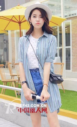 中长款的条纹防晒衣,蓝色带来小清新味道,宽松的款式很有BF风的感觉,百搭又随性,加上一定小圆帽就能放心亲吻阳光,也不怕被晒黑了。