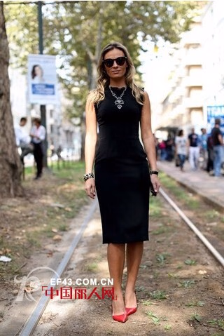 2、款式简约,剪裁修身的黑色连衣裙也是潮人们的基本必备款,而且相当百搭,除了要有一副好身材外,对配饰的选择上同样要求有一个不错的品味,各种或夸张或精致的项链等配饰将直接决定这款黑裙所应该出现在的何种场合中。