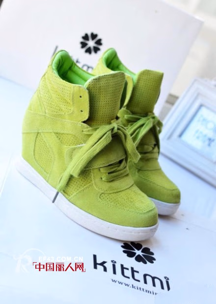 清新的苹果色,内增高的设计是女生的最爱,即舒适又好穿的“平底鞋”夏天再也不用踩着高跟鞋了,内增高也可以很显身材,清新的苹果色休闲鞋,搭配清爽的雪纺上衣怎能不吸睛呢?