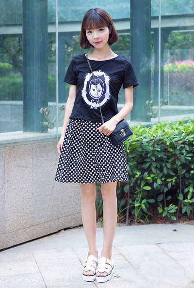 波点元素经典不败,波普风格诠释复古时尚。今天为大家带来波点裙与T恤的搭配,这两者组合简单吸晴,也是夏季搭配中较为流行的装束。赶紧来学学,喜欢复古小清新的姑娘们,穿出属于自己的魅力。