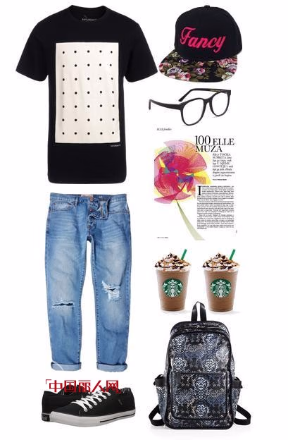 假日休闲风格,不要忙于工作偶尔也要放松下,换下商务男士的包袱休闲风格也很不错哦,黑色T恤配上一条破洞牛仔,一个眼镜框+鸭舌帽,这样的配搭即减龄又时尚,是休闲的好搭配哦。
