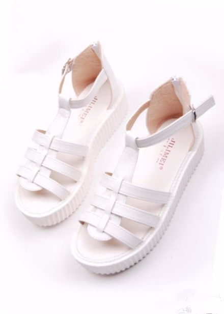 这款红色罗马鞋款式,几根细带的连接成为了这双罗马鞋,个性的加厚底,随意搭配学院风还是个性装扮都可以。