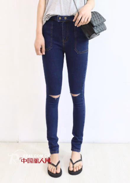 不要觉得破洞只是牛仔随意的破几个洞就可以了,不是哦,破洞也是有规则的,这款膝盖破洞牛仔款式长裤的造型,膝盖部位的破洞,显得更加高挑,这样穿出街绝对很有回头率哦。